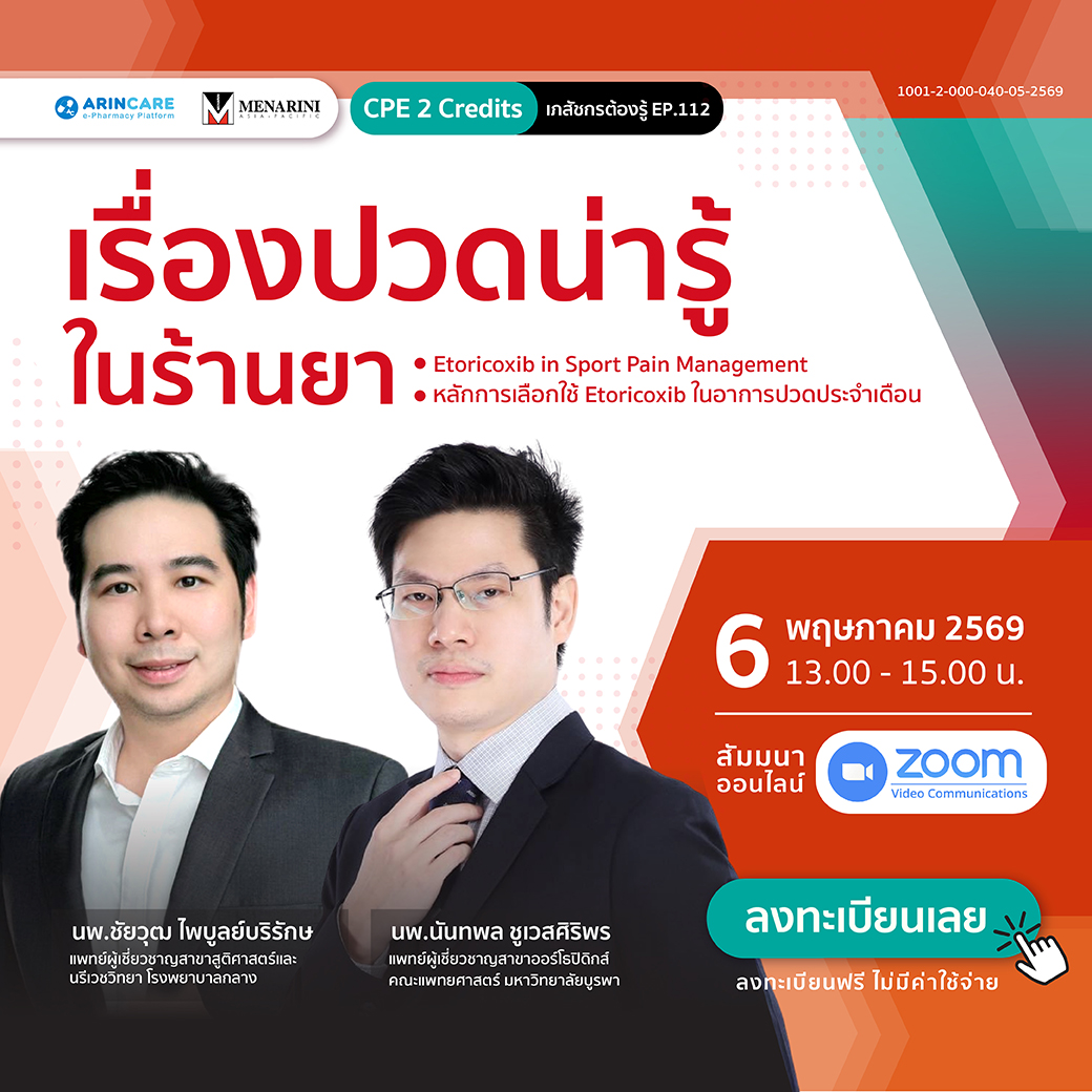 17 Apr (Online)เรื่อง “เรื่องปวดน่ารู้ในร้านยา” จัดวันที่ 06 พ.ค. 2569 โดย สถานปฏิบัติการเภสัชกรรมชุมชน (โอสถศาลา) อ่านต่อ