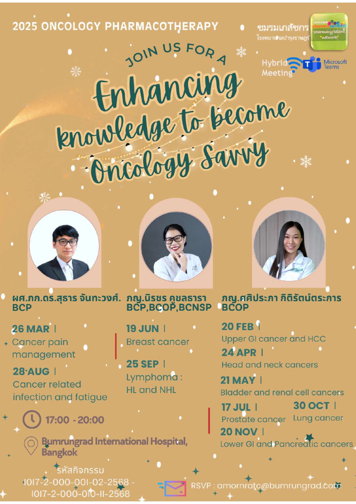 24 Oct 2025 Oncology Pharmacotherapy "Enhancing Knowledge to become oncology savvy" หัวข้อ Lung Cancer จัดวันที่ 30 ต.ค. 2568 ณ Meeting Room 1 อาคาร A, Floor 21 Bumrungrad International Hospital โดย ชมรมเภสัชกรโรงพยาบาลบำรุงราษฎร์ อ่านต่อ