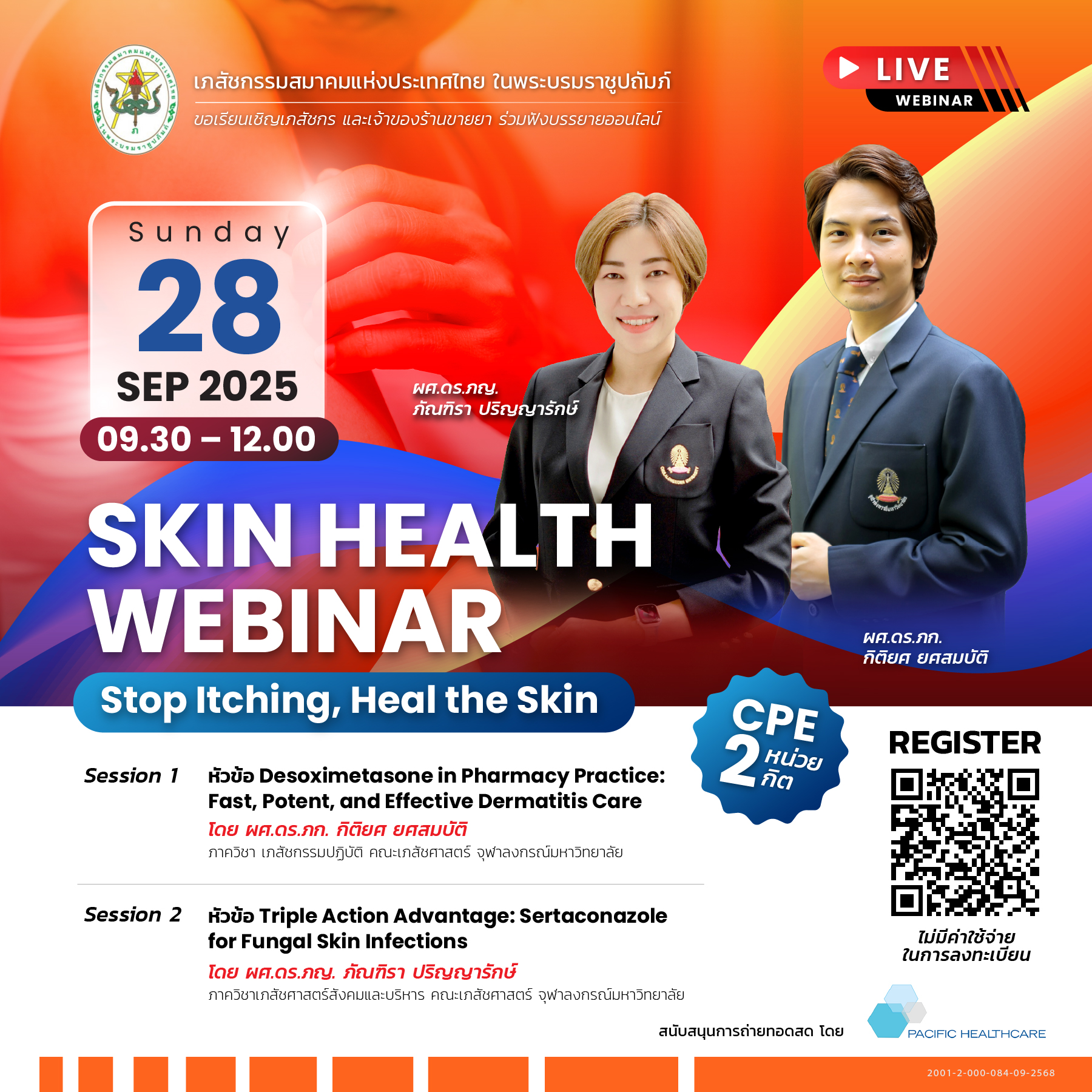 จัดวันที่ 28 ก.ย. 2568 โดย เภสัชกรรมสมาคมแห่งประเทศไทย ในพระบรมราชูปถัมภ์