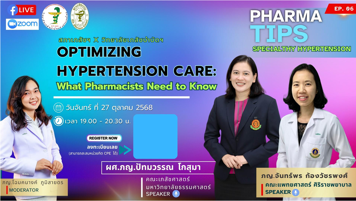 จัดวันที่ 27 ต.ค. 2568 โดย ศูนย์การศึกษาต่อเนื่องทางเภสัชศาสตร์