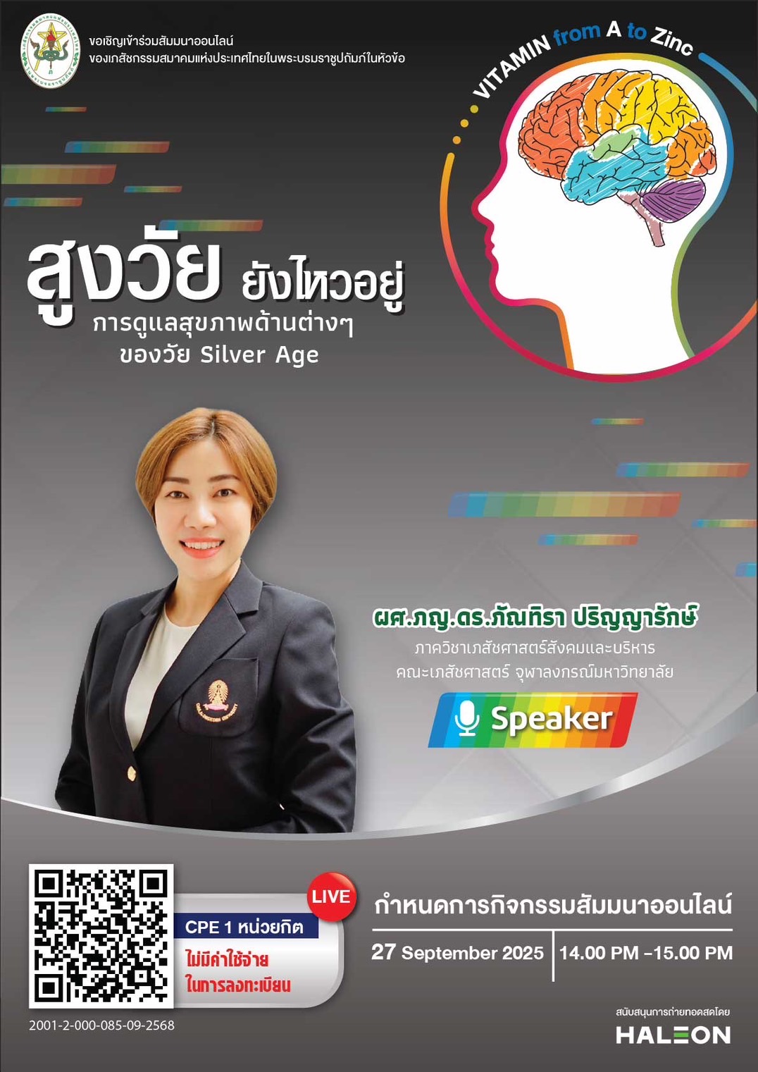 (Online)สูงวัย ยังไหวอยู่ : การดูแลสุขภาพด้านต่างๆของวัย Silver Age