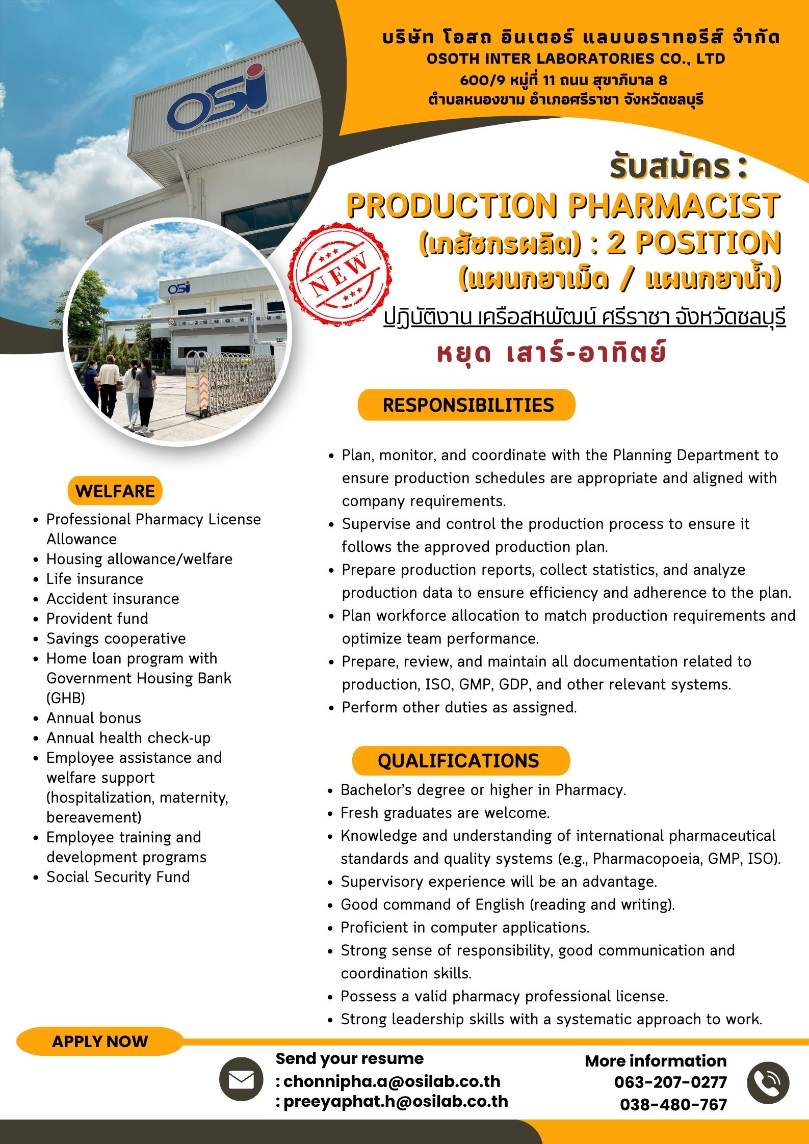 - ควบคุมดูแลกระบวนการผลิตให้เป็นไปตามแผนการผลิต
