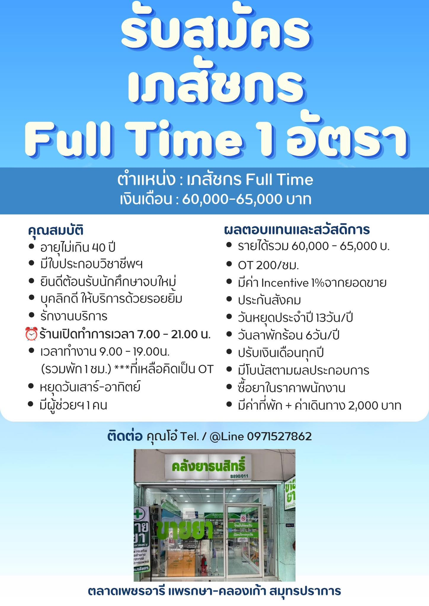 เวลาทำงาน : 9.00–19.00 น. (รวมพัก)