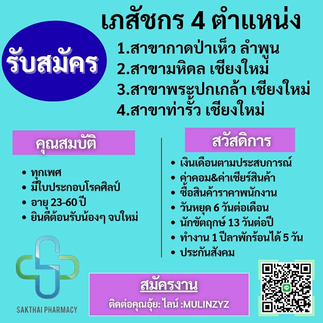 รับสมัคร เภสัชกร 4 ตำแหน่ง