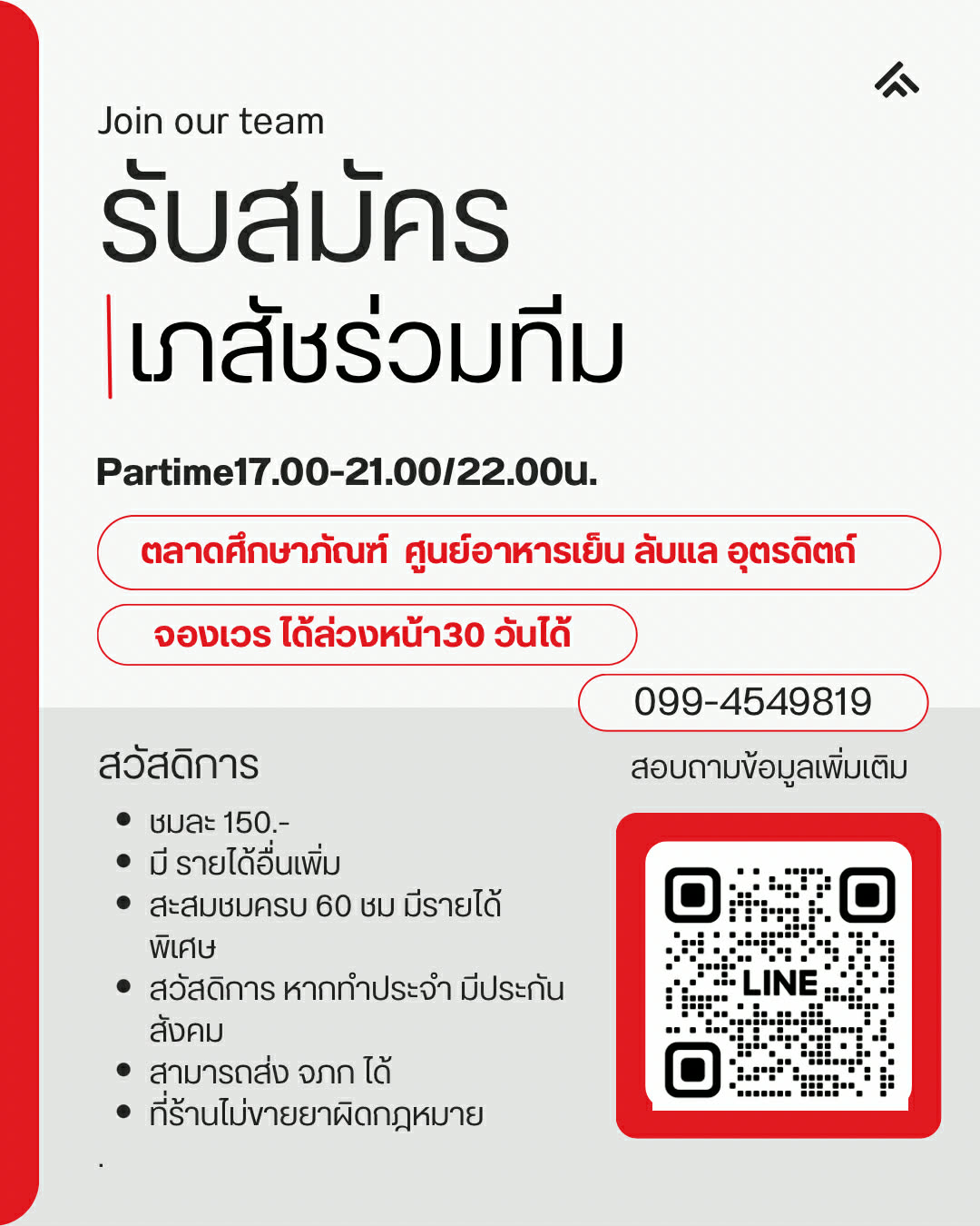 Part-time 17.00–21.00 / 22.00 น.