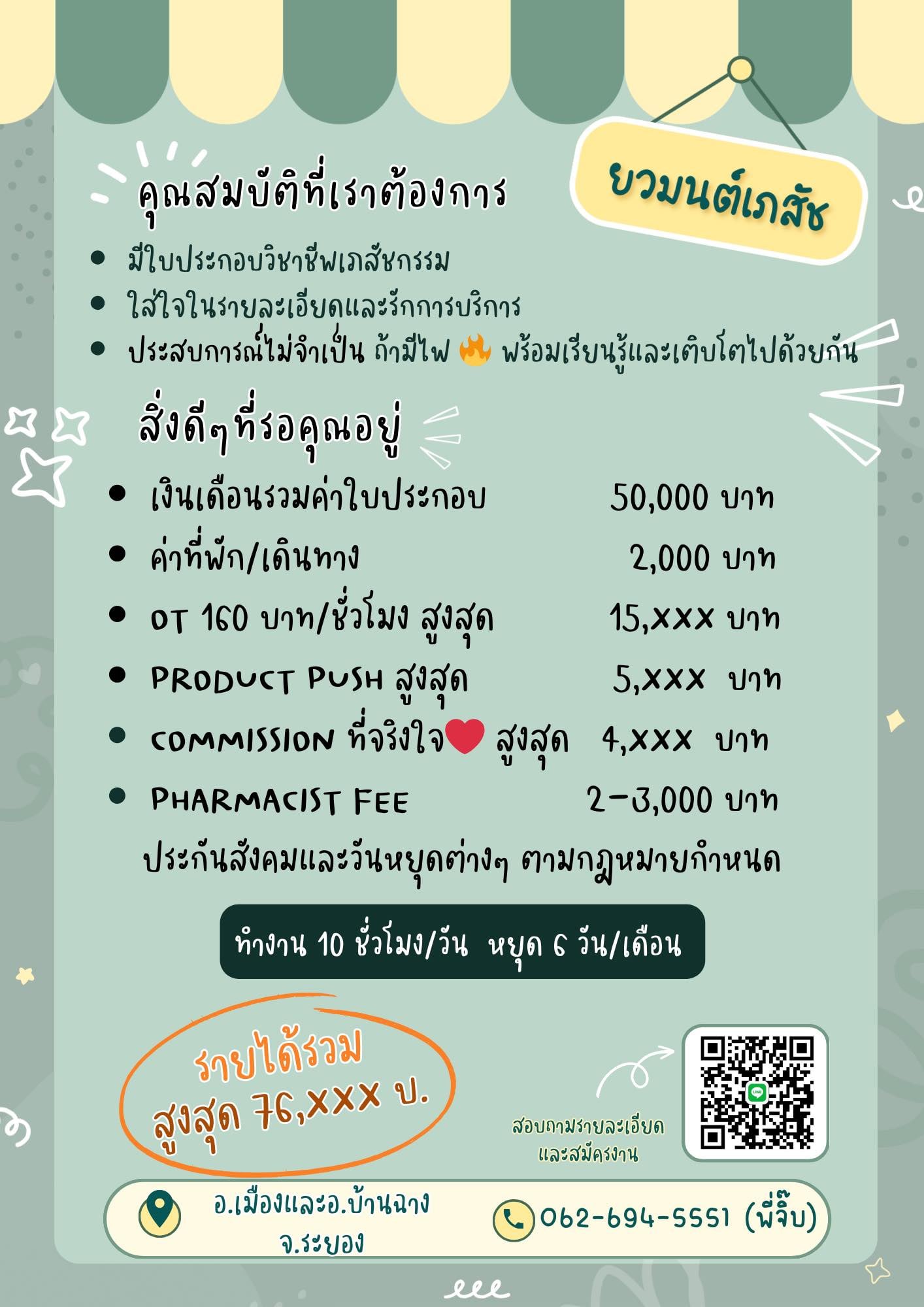 ส่ง Resume + ใบประกอบวิชาชีพเภสัชกรรมมาที่ hr.yawamon@gmail.com