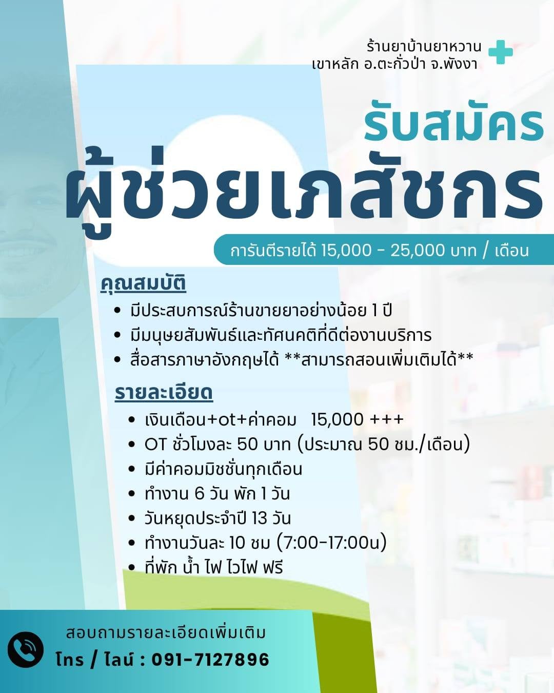 - มีประสบการณ์ร้านขายยาอย่างน้อย 1 ปี