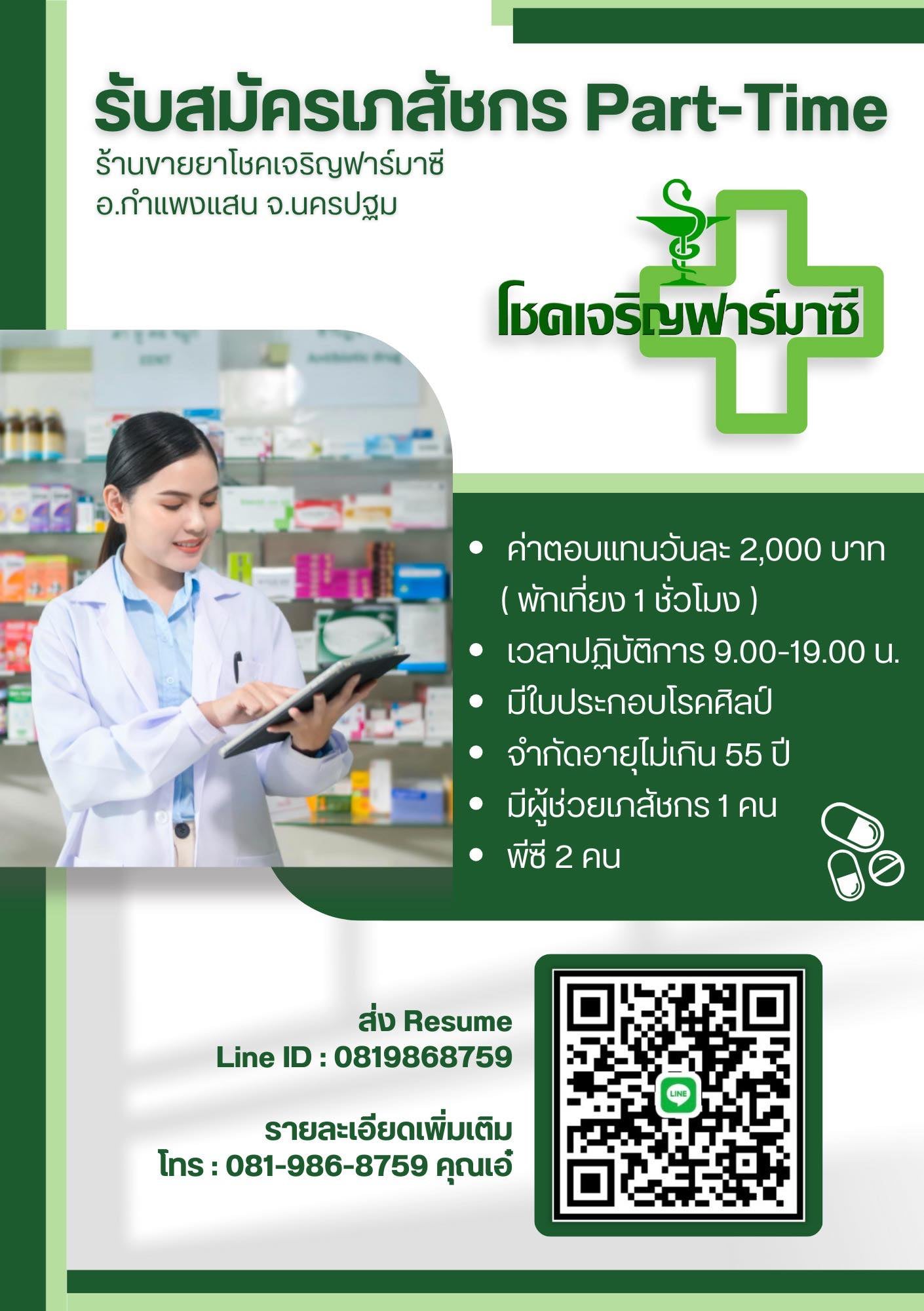 • มีผู้ช่วยเภสัชกร 1 คน