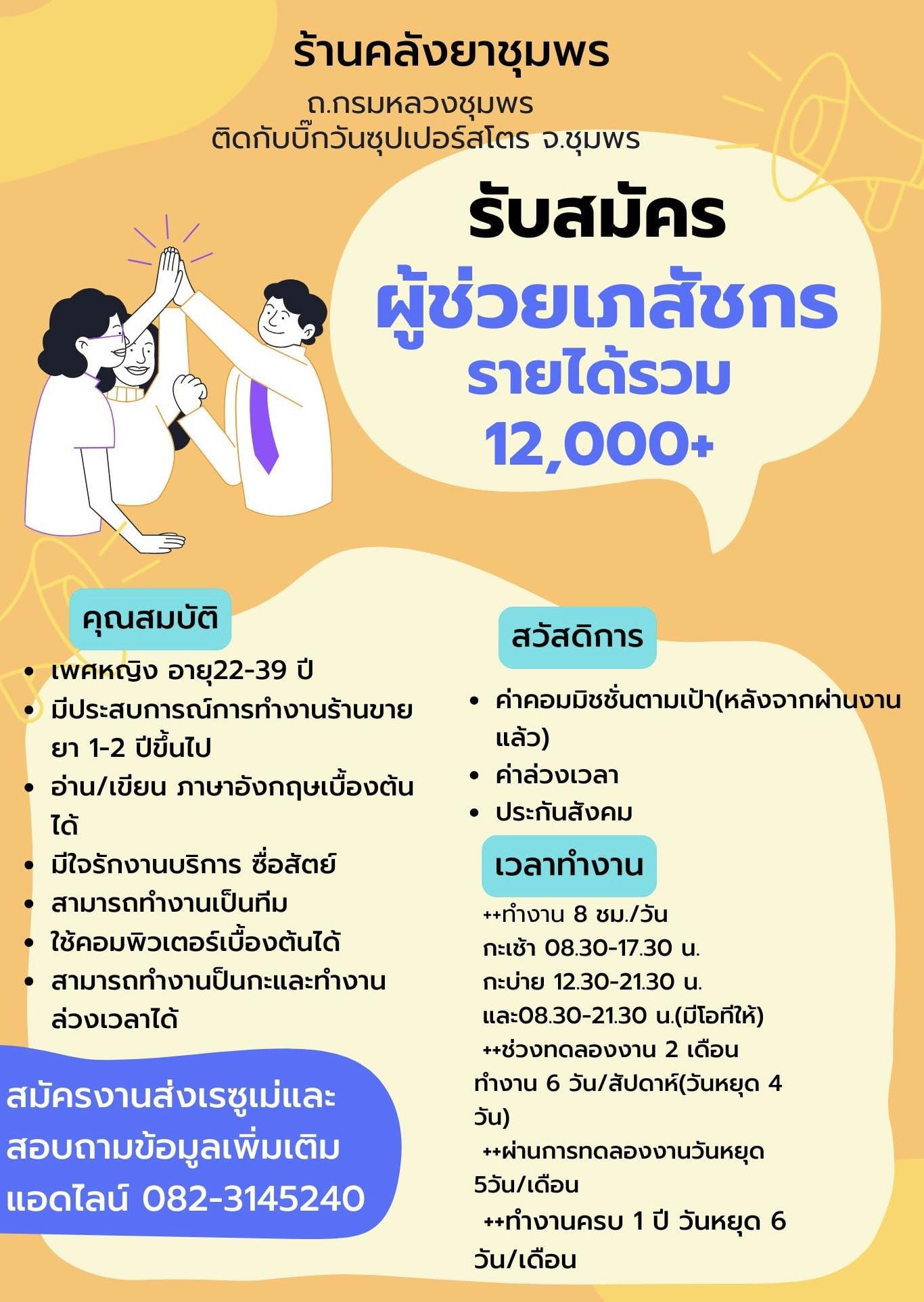เงินเดือน (บาท) : 12000 - ตามตกลง/ ตามโครงสร้างองค์กร