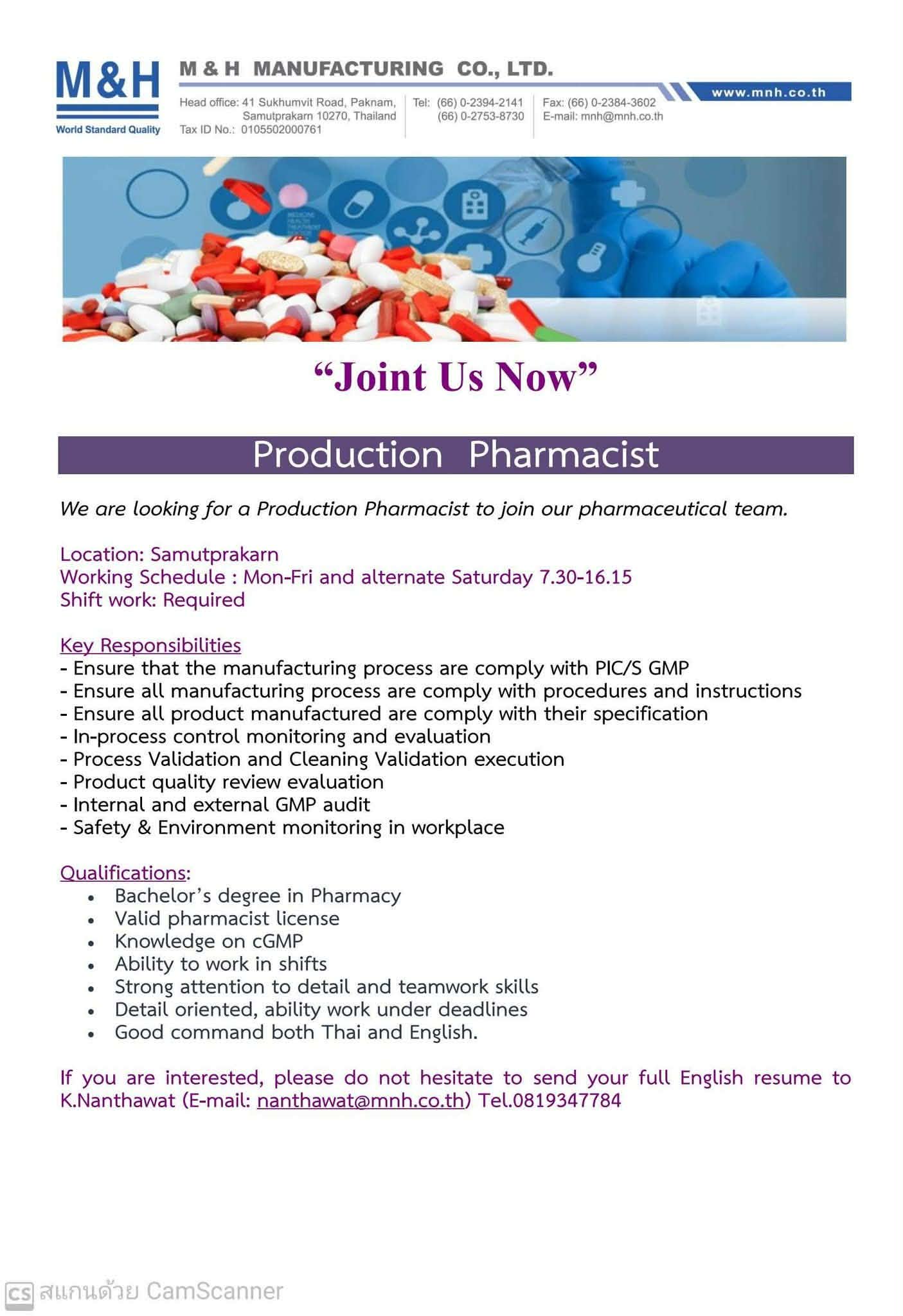 หากสนใจ กรุณาส่งเรซูเม่ภาษาอังกฤษของคุณมาที่