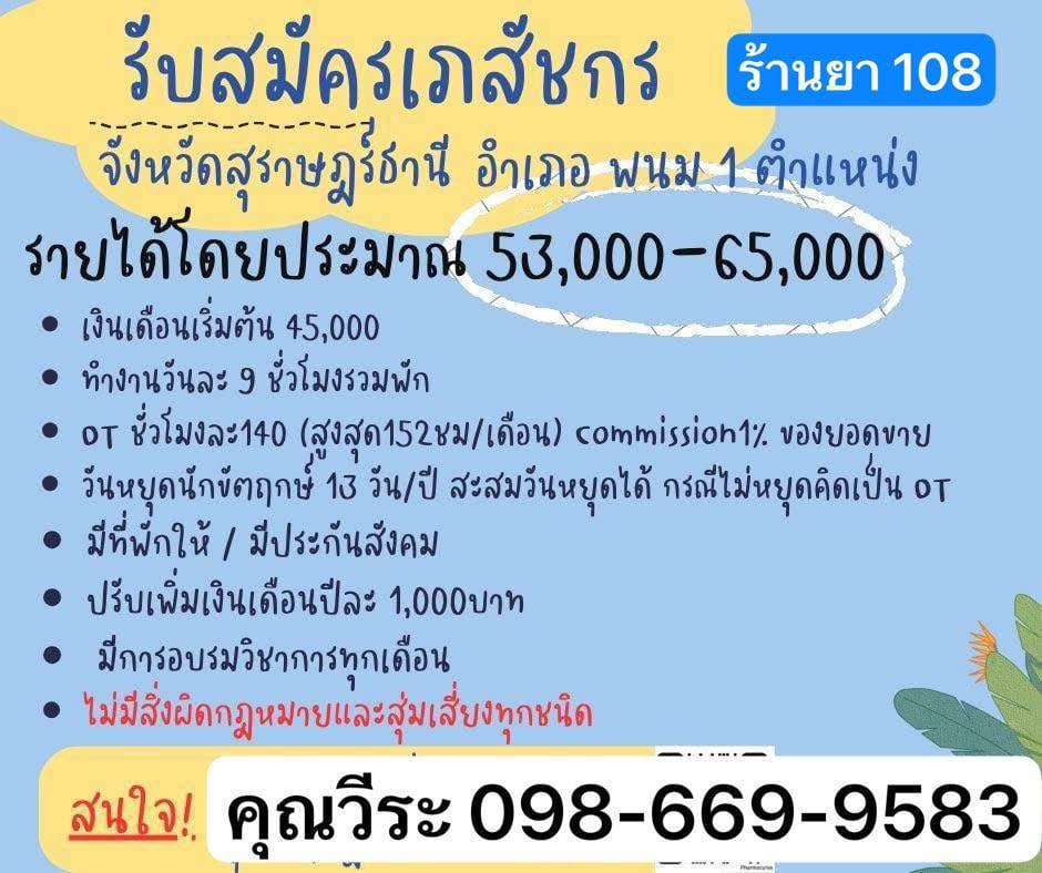 สถานที่ปฏิบัติงาน : สุราษฎร์ธานี