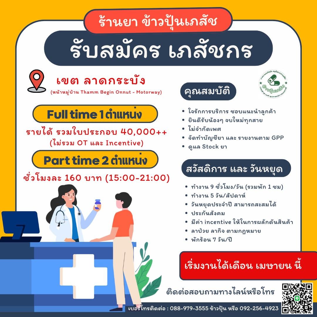 เวลาทำงาน : 9 ชั่วโมง รวมพัก