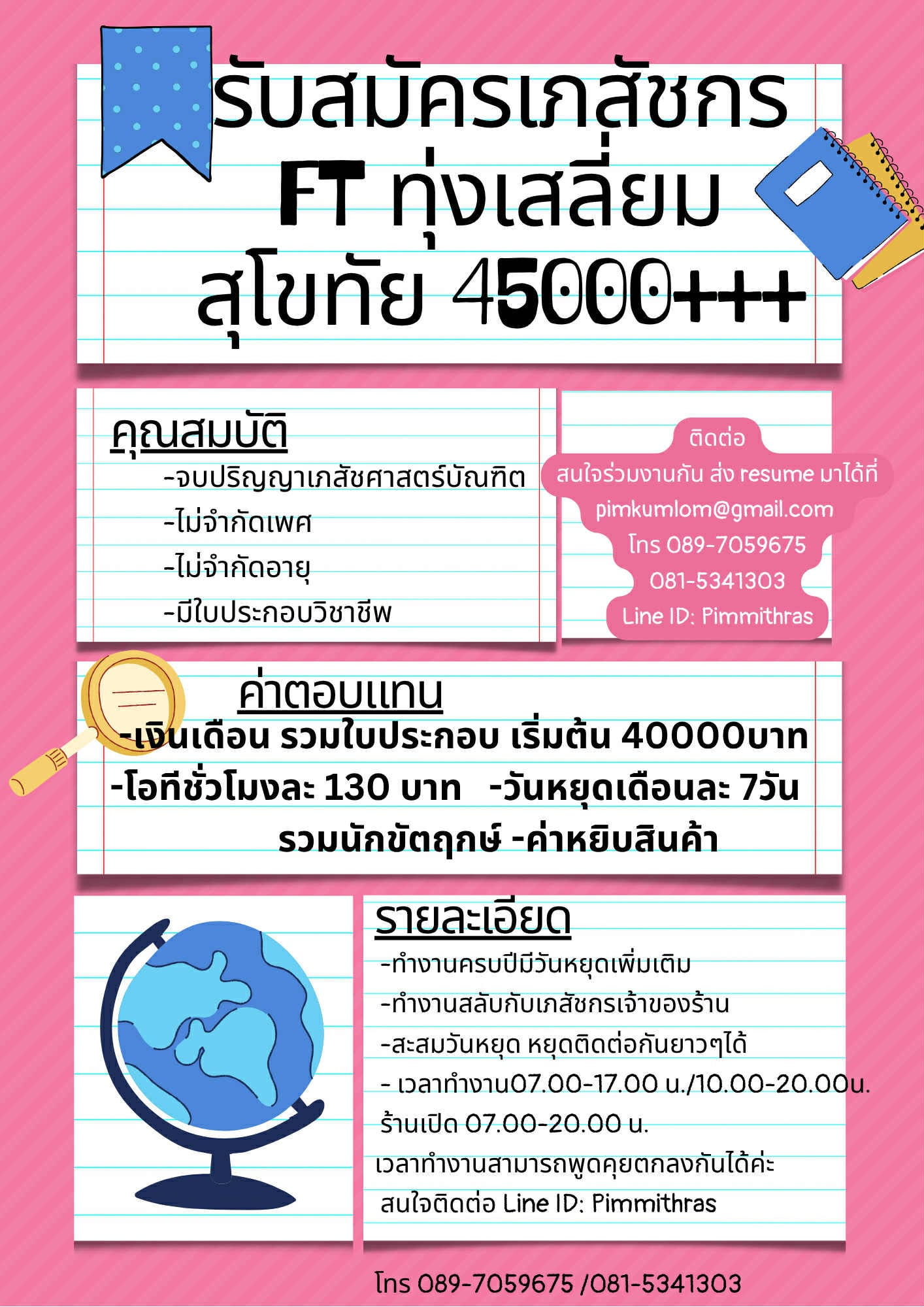 สนใจร่วมงานกัน ส่ง resume หรือติดต่อ
