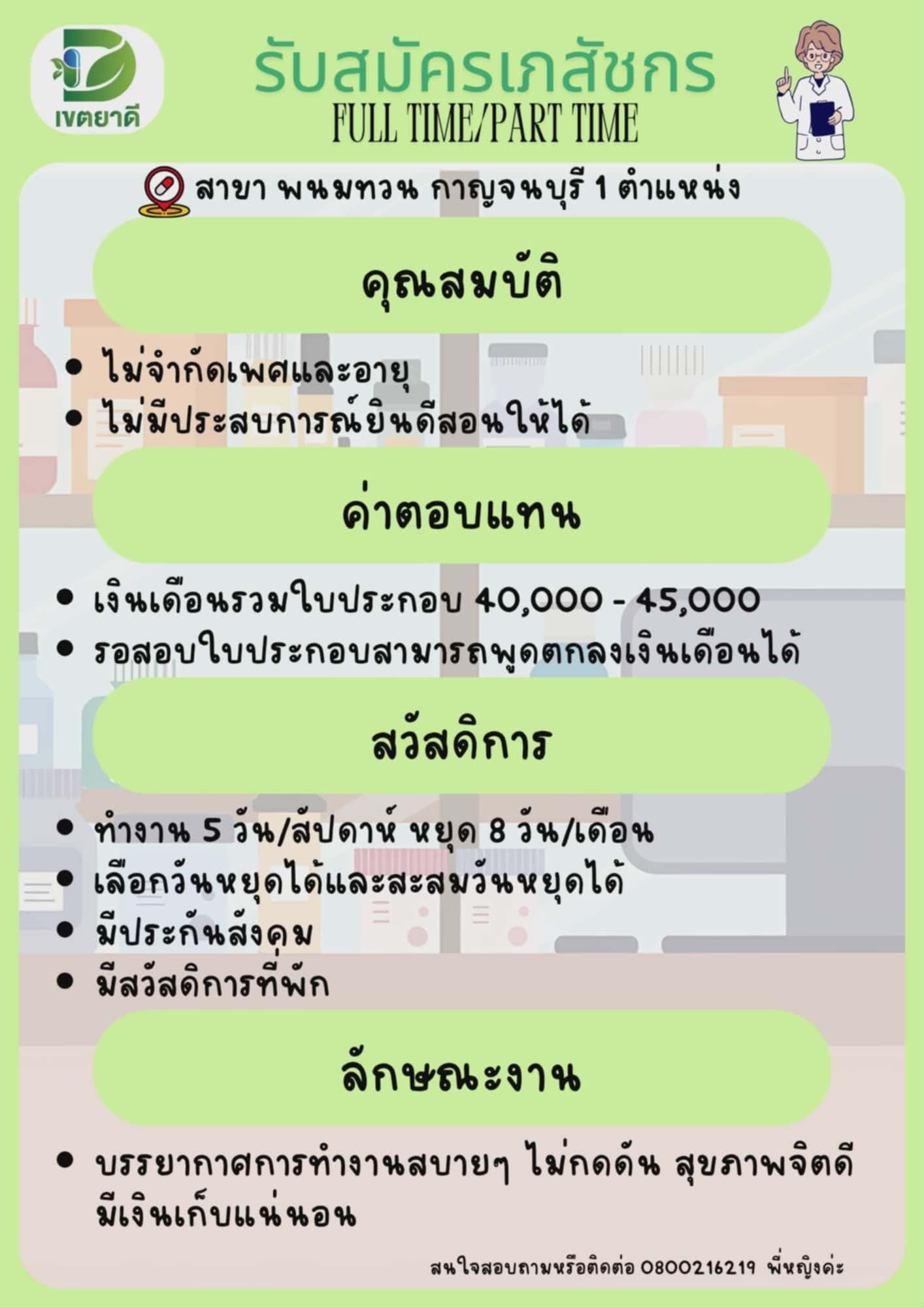 เวลาทำงาน : ทำงาน 5 วัน / สัปดาห์