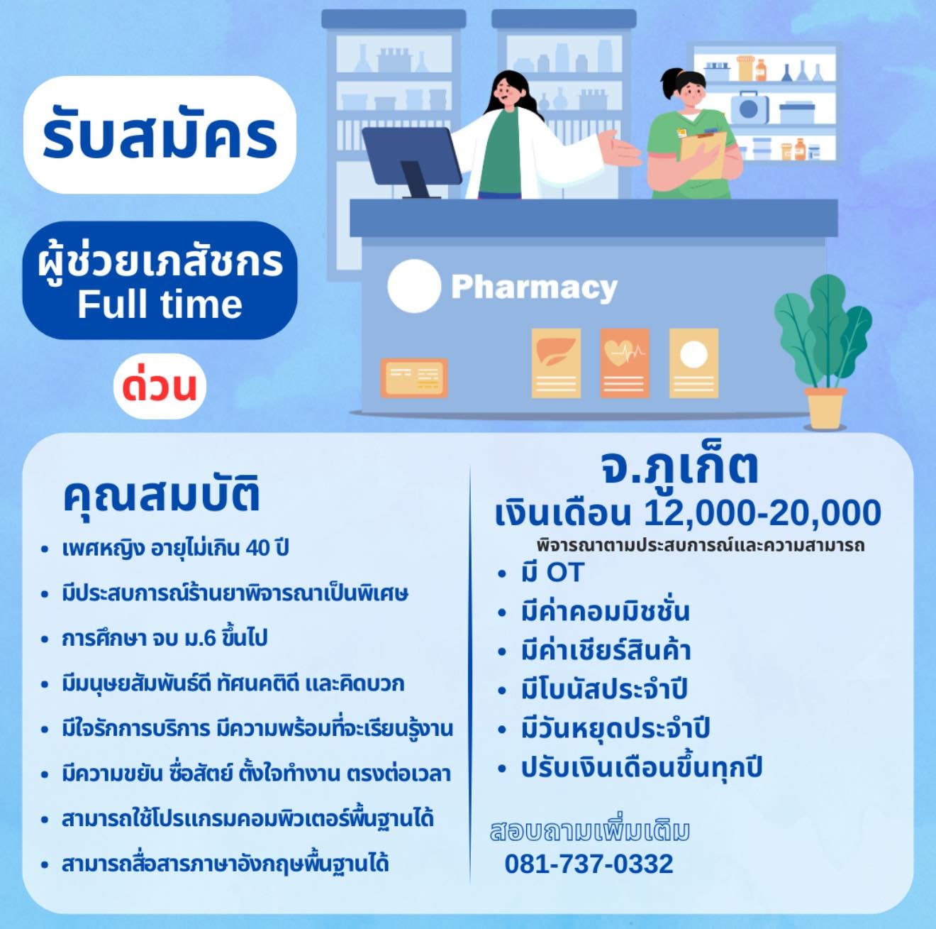 รับสมัคร ผู้ช่วยเภสัชกร (Full Time) ด่วน