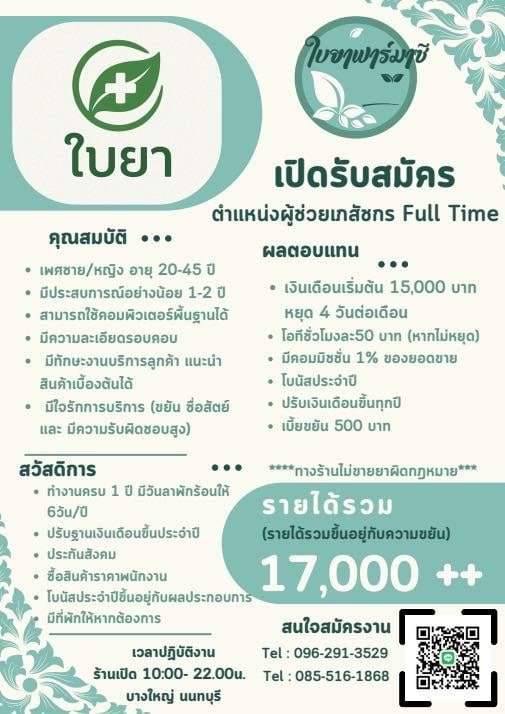 เวลาทำงาน : ไม่ระบุ