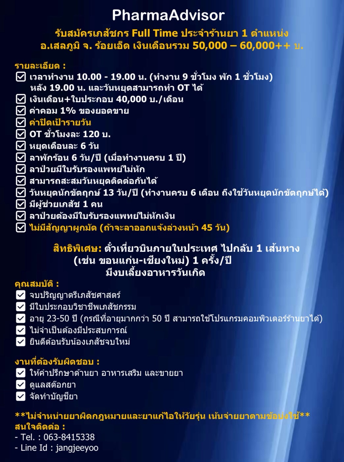 ✅ เงินเดือน+ใบประกอบ 40,000 บ./เดือน