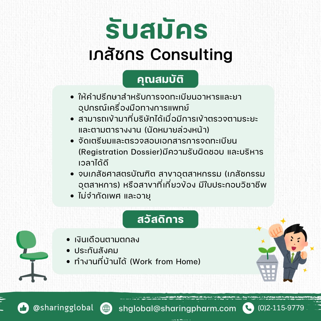 ให้คำปรึกษาสำหรับการจดทะเบียน อาหารและยา และ อุปกรณ์เครื่องมือทางการแพทย์