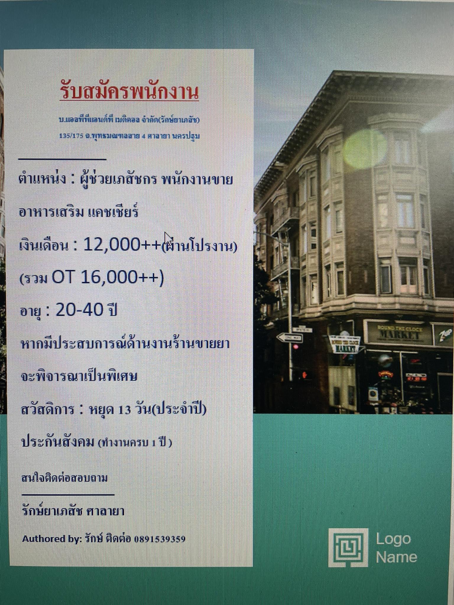 เงินเดือน (บาท) : 12000 - 16000