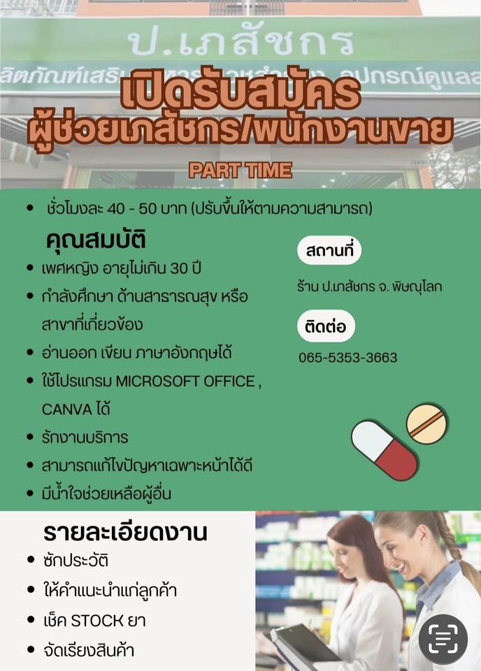 สถานที่ปฏิบัติงาน : พิษณุโลก
